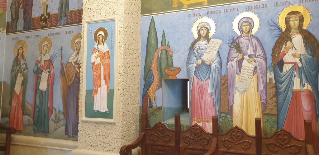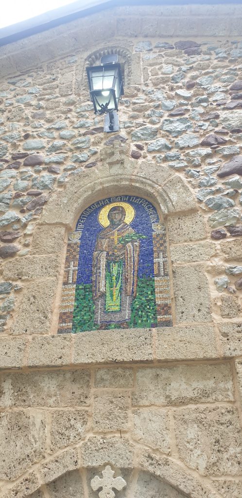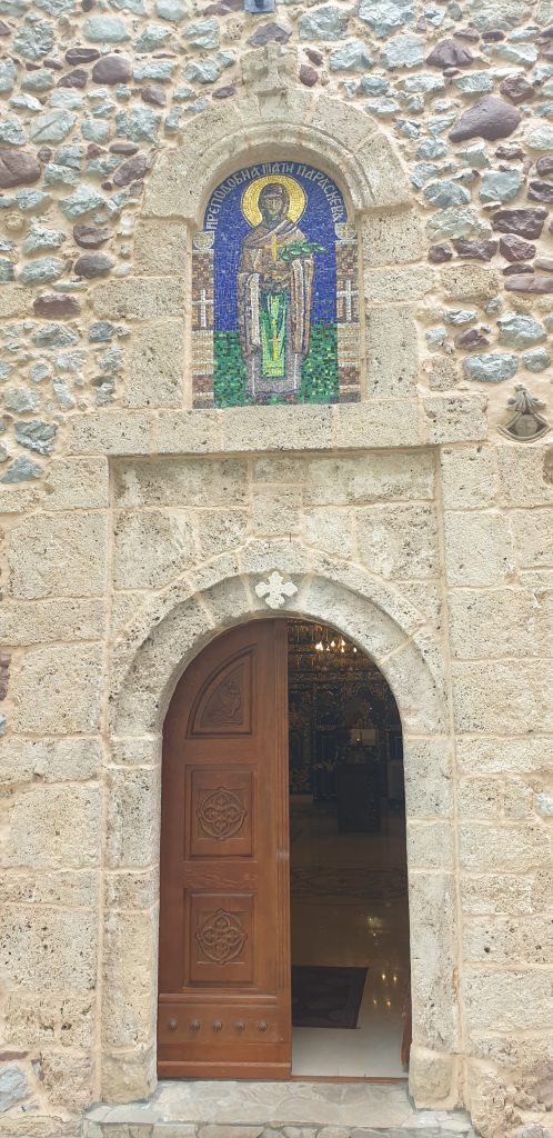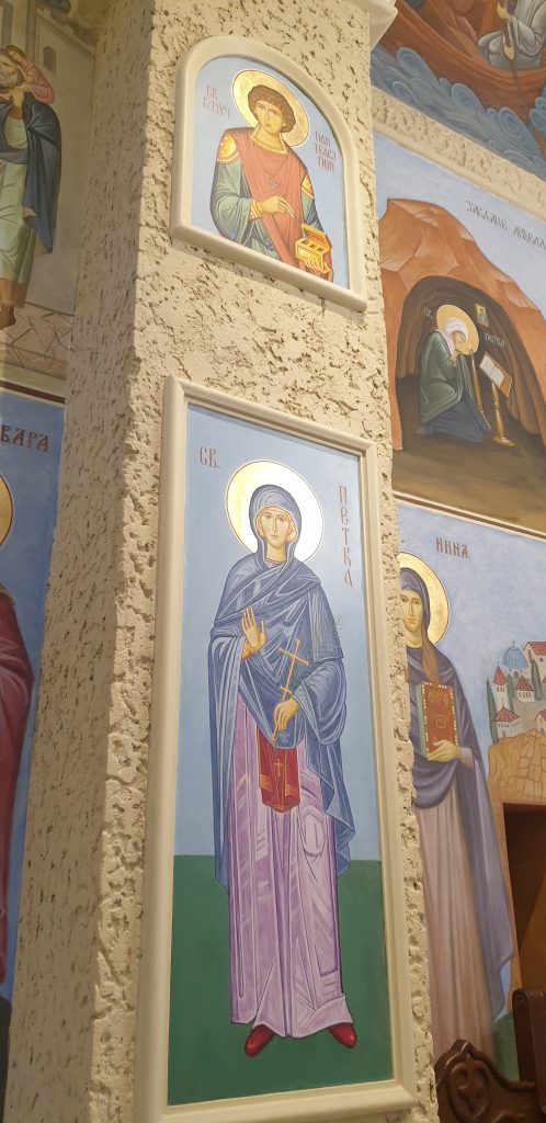 -Manastir je star, datira 13. i 14. vek. Zadužbina je braće Musić, koji su rođaci Kneza Lazara, koji pomaže da podignu manastir Svete Petke što je njihova krsna slava.Rođaci, odnsono potomci, braće Musić danas žive u Beogradu, reč je po porodici Sekulić. Pre dve godine pozvali su nas sa željom da u manastiru krste decu, objasnili su nam poreklo svoje i vezu sa Musićima. Manastir je u novom izdanju, obnova je trajala 5 godina, freske su zbog vlage počele da se uništavaju. Došli smo na ideju o kompletnoj obnovii zaštiti od vlage. Znali smo da se u temelju nalaze mošti i obnovu smo iskoristili za istraživanja. U oltarskom delu nađene su mošti Svetog Andreja. Posle Kosovskog boja, Srbiaj potpada pod Tursku vlast. Knjeginja Milica odlazi kod sultana za mošti Svete Petke, ona je zbog toga blagodarna Bogu. Gde god su mošti prenoćile tu su podignute crkve Svete Petke, tako su i ovde bile. Po predanju potekli su izvori po kojima je selo dobilo ime. Turci su izvore zakopali. Manastir je metoh Ravanice, zato imamo fresku sa knezom Lazarem i Svetom Petkom. Manastir je jedinstven po domu, na početku ratnu siročad, a kasnije bolesne, jer komunistima nije odgooralo da zdrava deca budu u manastiru, već samo bolesni. Oni nas uče da nas daruju zagrljajem a mi njih osmehom i radošću. Zaštini su znak manastira.