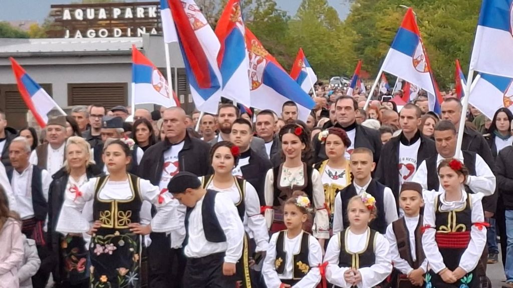 Veliki broj građana Jagodine okupio se danas na skupu protiv blokada i skupu podrške Srbima na Kosovu i Metohiji, uoči nedeljnih lokalnih izbora. Održana je i šetnja Ulicom Dragana Markovića Palme do turističko memorijalnog kompleksa “Dragan Marković Palma” u jagodinskom izletištu Potok.