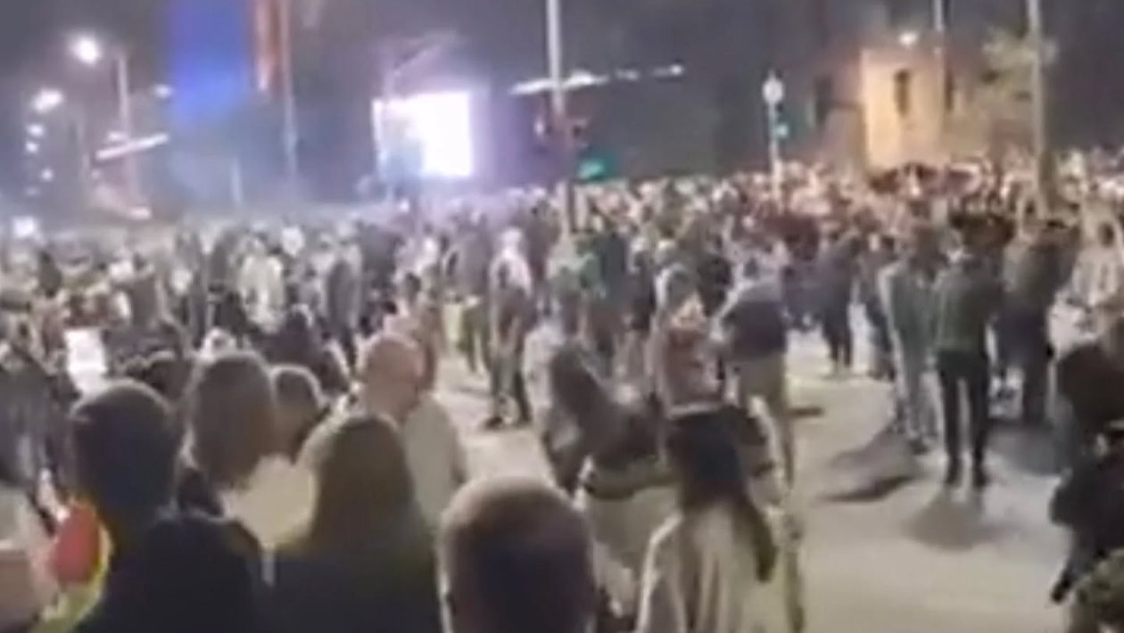 Policija je saopštila da je “grupa učesnika neprijavljenog skupa, okupljena u ulici Kneza Miloša, napala građane koji su se nalazili na prijavljenom javnom skupu, u Pionirskom parku, bacajući različite predmete i pirotehnička sredstva u pravcu okupljenih”.