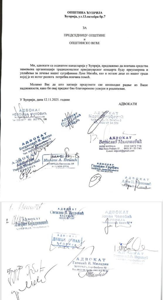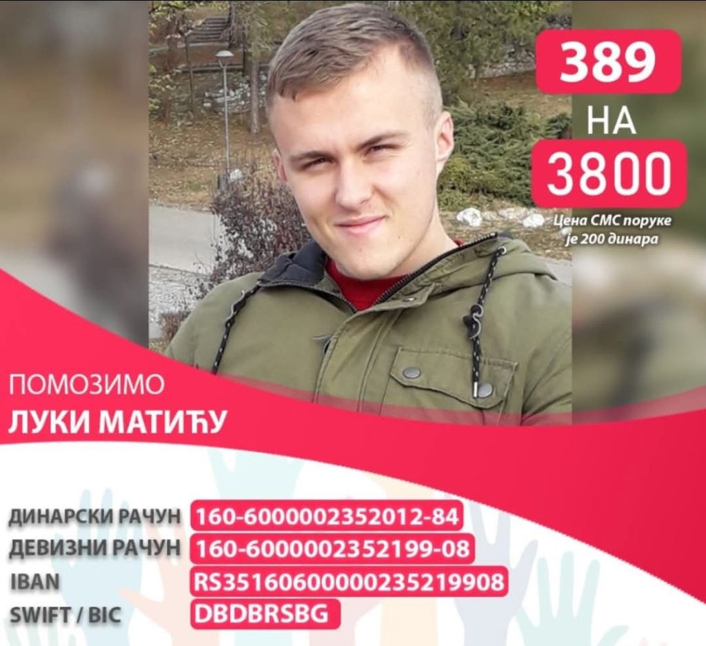 Mladiću Luki Matiću (26) iz Ćuprije potrebna je pomoć za lečenje u Turskoj. Pomoć prikupljaju građani Ćuprije, inicijativu da Opštian Ćuprija novac za organizaciju prvojanuarskog koncerta prosledi za Lukino lečenje pokrenui su učenici Ginazije I advokati. Opština se ne oglašava. Uputili smo pitanja predsednici opštine Jeleni Đulinac ali odgovora nema….