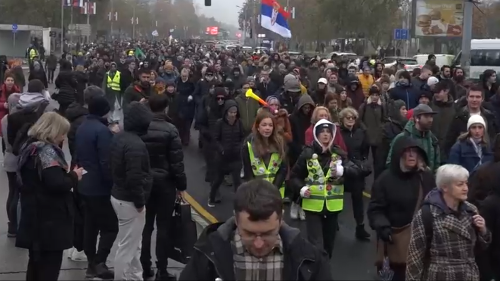Studenti u blokadi organizovali su protestnu šetnju pod nazivom “Godinu dana, isti zahtev” povodom, kako navode, godišnjice napada na studente Fakulteta dramskih umetnosti tokom odavanja pošte stradalima u padu nadstrešnice na Železničkoj stanici u Novom Sadu. Šetnja je počela ispred FDU-a odavanjem pošte stradalima, a nastavljena je pored Opštine Novi Beograd i Palate pravde do zgrade Radio-televizije Srbije u Takovskoj ulici. Blokade visokoškolskih ustanova pokrenule su talas studentskih i građanskih protest pre godinu dana .