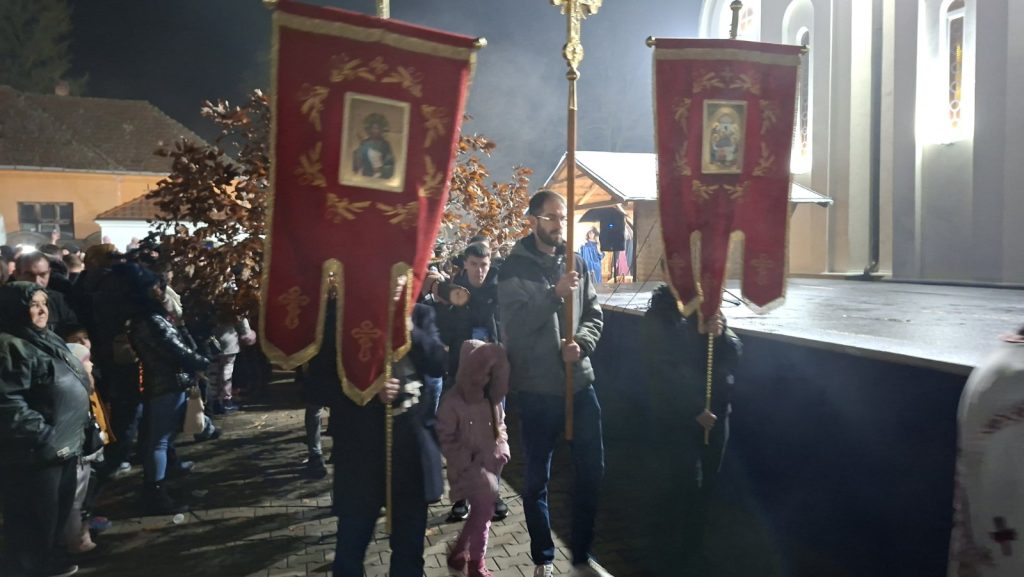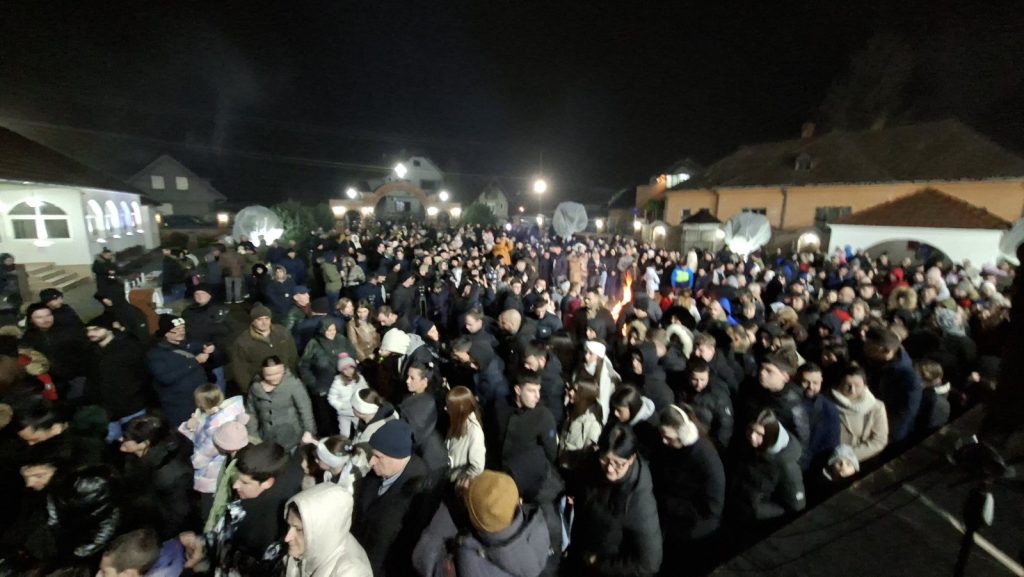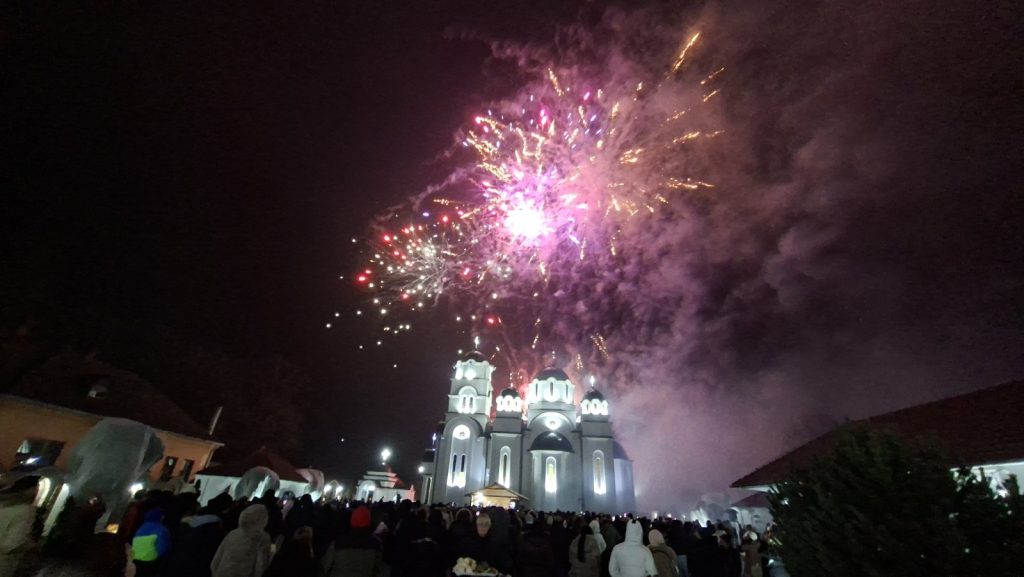 “Želim vam mnogo zdravlja, veselja, ali mnogo truda i rada na nama samima. Da svi večeras odemo kući i da u ovoj božićnoj noći najpre zagrlimo sve naše bližnje i da jedni drugima obećamo da ćemo ove godine da budemo malo bolji, makar malo, pa ćemo svake godine po malo”, dodao je namesnik Gajić. Nakon toga usledio je vatromet iznad Hrama Svetog Jovana Krstitelja u Končarevu. Za sve prisutne obezbeđeni su kuvana rakija, vino i čaj, kao i girice i voće.