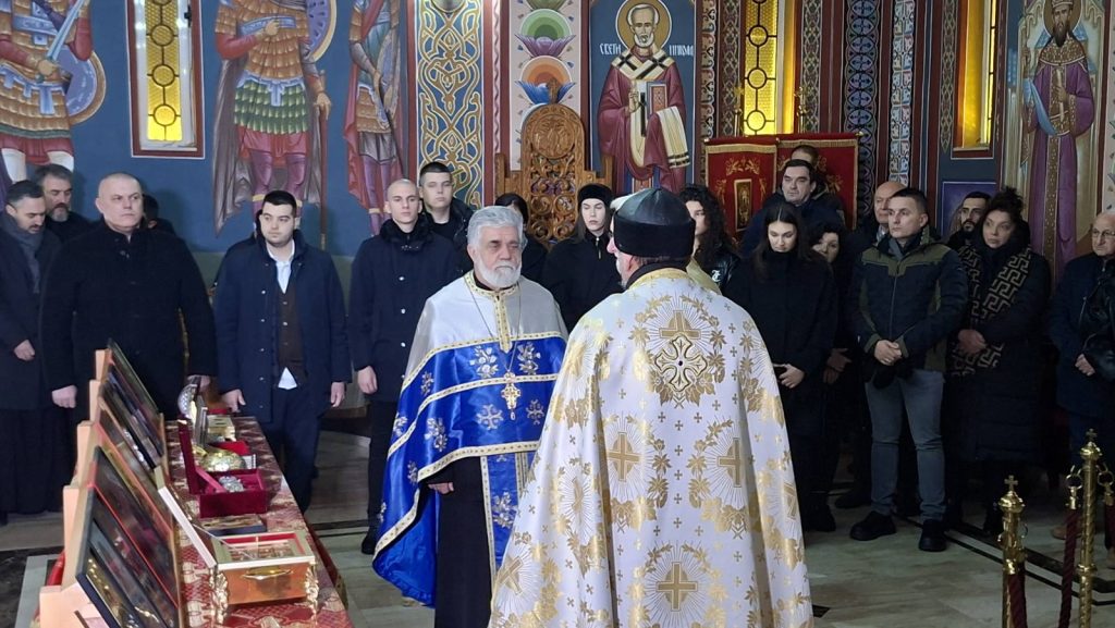 “Želim vam da su vam porodice žive i zdrave, da se deca rađaju, krste i venčavaju, jer samo jedinstvena i složna porodica pobeđuje u svemu. To je jedina prava reč koju mogu ja, kao neko koje izgubio stub svoje porodice, da vam kažem. Sve drugo, nije bitno. Sa parama ne možete ništa. Neću da vam pričam slatkorečive političke priče. Ako vam je porodica živa, zdrava, na okupu, to je jedino pravo bogatstvo. To ne može da se kupi parama, ničim. Živi bili. “Na mnogaja ljeta” – poručio je okupljenim vernicima sin ktitora božijeg hrama u Končarevu i potpredsednik Jedinstvene Srbije Dalibor Marković.