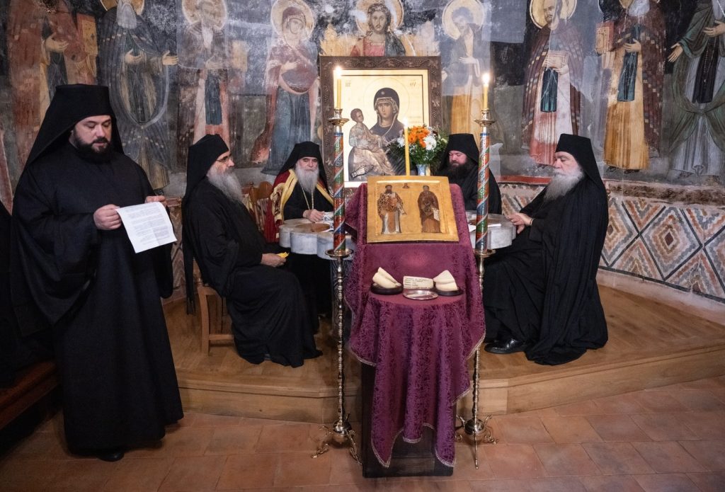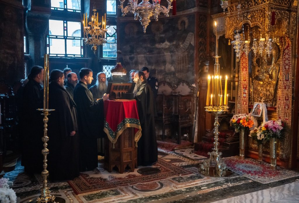Prazničnim bdenijem i Sv. Liturgijom je načalstvovao Visokoprepodobni arhimandrit Hristofor, iguman svetogorskog manastira Grigorijata.