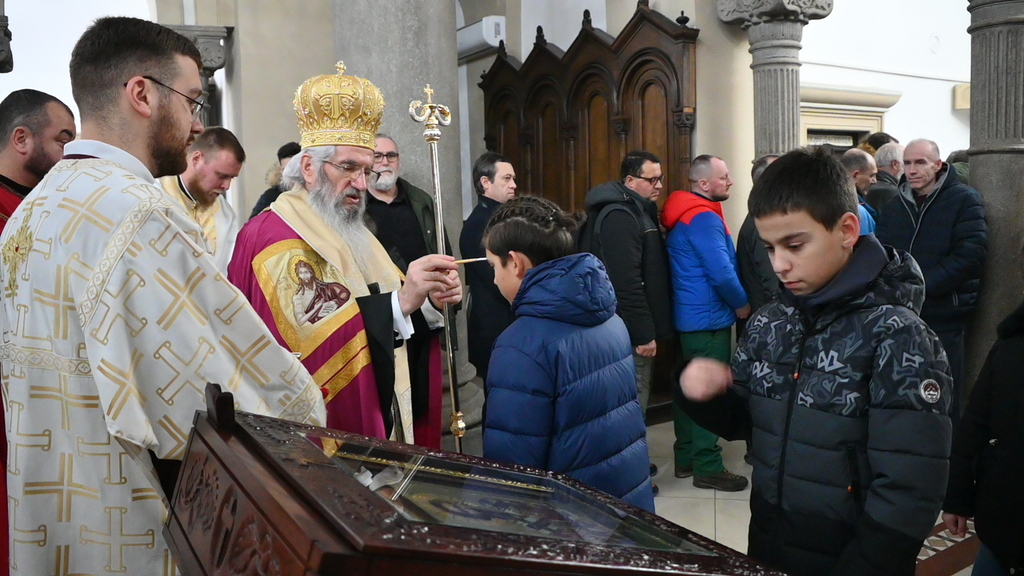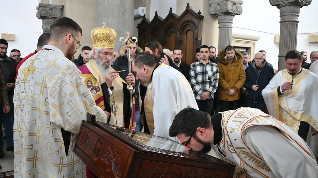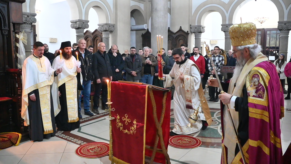 -Godišnjica od rođenja koju ove godine slavimo – 850 godina od rođenja Svetoga Save. Mi Srbi imamo na koga da se ugledamo. Nemamo potrebe da lutamo. Sve nas je Sveti Sava učvrstio u Hristu, u veri, u Jevanđelju. Zato da ga zamolimo da se on moli Bogu za nas. Nije slučajno onaj slikar naslikao onu divnu fresku kako Sveti Sava blagosilja Srpčad. Taj Sveti Sava, nije njemu bilo lako da nam preda i veru i Jevanđelje jer smo mi nadod koji nismo znali to sve. Mi smo bili pagani. Ali Sveti Sava je podigao crkve, škole i manastire. On je decu učio kako da pišu, kako da govore, kako da hodaju, kako da se vladaju. Kada molimo da nas mimoiđu nevolje, bilo je nevolja i biće, da znamo i da se setimo naših Svetih predaka. Uzmite malo samo pročitajte istoriju srpskoga naroda pa ćete videti da je to jedna mukotrajna, dugotrajna ali istrajna istorija. Videćete da je još mnogo još gorih prilika i neprilika bilo ali srpski narod je ostao veran Crkvi, veran Bogu, veran Svetom Savi. Nije se odrekao ni kada je bio rob toliko vekova onome koji ne zna ni za Boga ni za Crkvu. Ali ga je tada održala vera, ono što često govorim – da mi verom useljavamo Boga u sebe. Dok smo na putu Svetoga Save, a on je proputio naš put – zato se kaže da je on put koji vodi u život večni, dok smo na putu Svetoga Save, mi smo na putu Hristovom. Skrenimo li sa puta Svetoga Save, mi smo skrenuli sa puta Hristovoga. Jer Sveti Sava nije imao svoj put. On je uzio Hristov put. On je uzeo jaram Hristov, nosio ga. Uzeo je srpski narod na svoja pleća i izneo ga. Zato da se radujemo što se svi možemo nazvati decom Svetoga Save, rekao je vladika Jovan.
