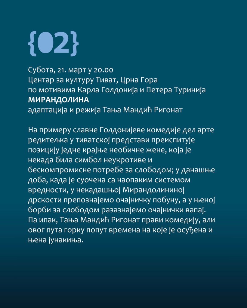 Od 20. do 27. marta u Kulturnom centru Jagodina publiku očekuje osam festivalskih večeri i predstave pozorišta iz zemlje i regiona.